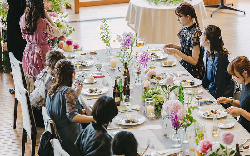 挙式は既に海外などで済まされた方へ。会費制のカジュアルなパーティーをプランニングします。BBQスタイルや宿泊も兼ねて、ゆったりとした時間をゲストと過ごすなど、二人らしい時間を一緒につくっていきましょう。
